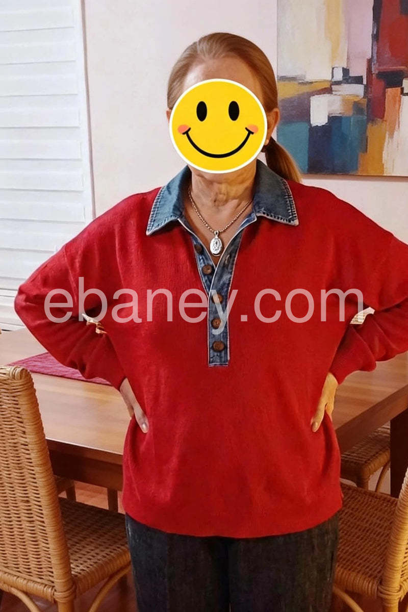 Make a bold statement with this striking red denim collar long sleeve top. The contrasting denim collar adds architectural interest and dimension to the classic silhouette, while the extended sleeves provide versatile layering options. Crafted with attention to detail, this piece transitions seamlessly from casual weekday wear to elevated weekend styling. The vibrant red hue commands attention without sacrificing wearability, making it an essential addition to any modern wardrobe. Perfect for those who appreciate thoughtful design and quality construction.