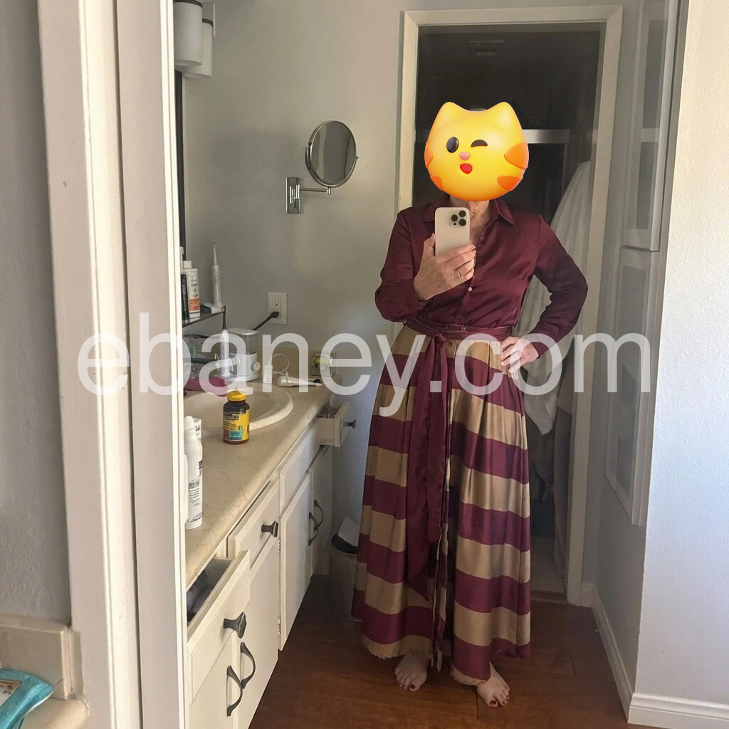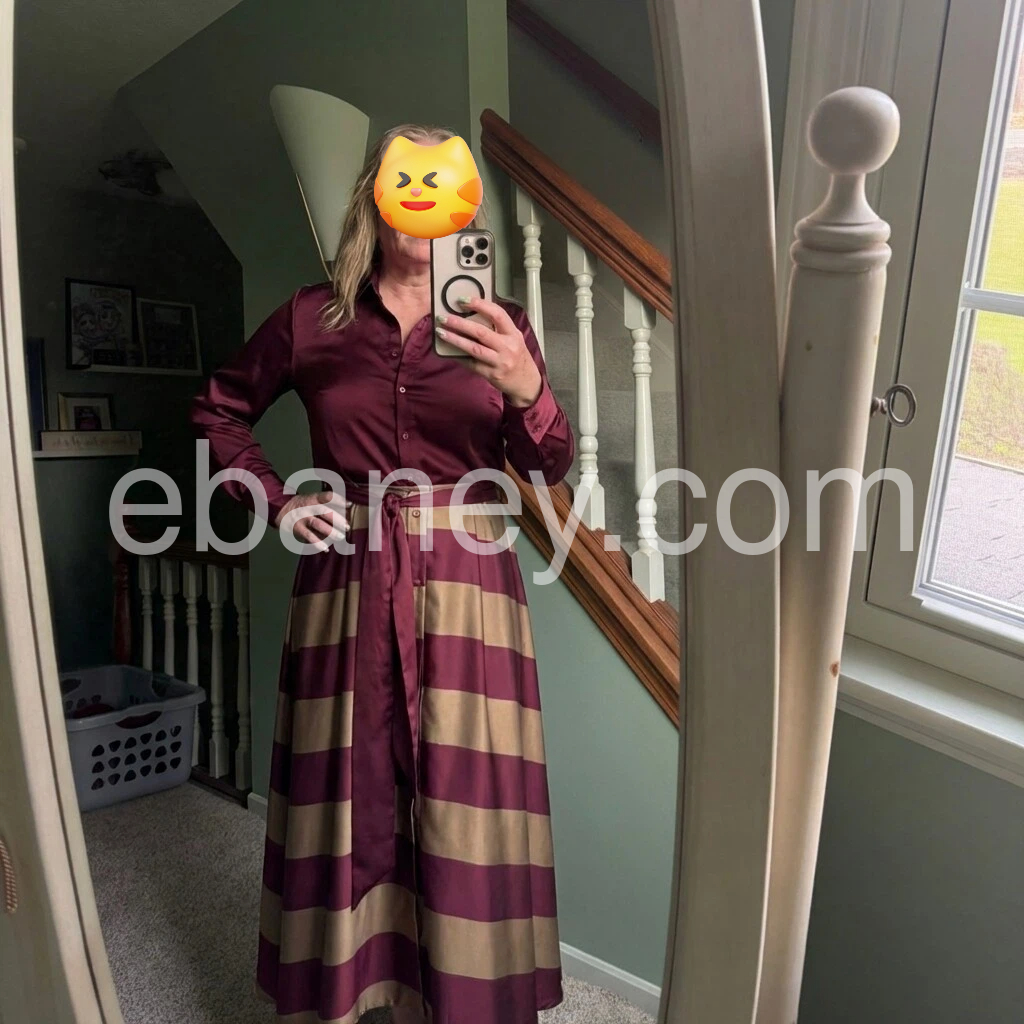 This set is a showstopper! The deep burgundy and warm khaki stripes are so elegant, and the satin fabric looks expensive. The belted waist accentuates my curves beautifully, and the maxi length is so flattering on my height. I’ve worn it to a wedding and a date night, and it’s become my go-to for special occasions.
