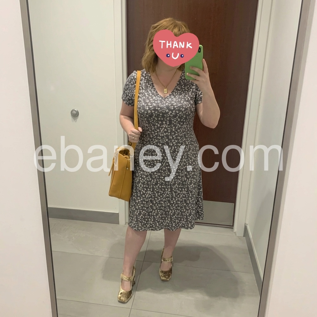 This is my new favorite everyday dress. The dark grey floral print is so pretty in person. It feels like a high-quality lightweight jersey material that breathes well in the heat. Highly recommend!