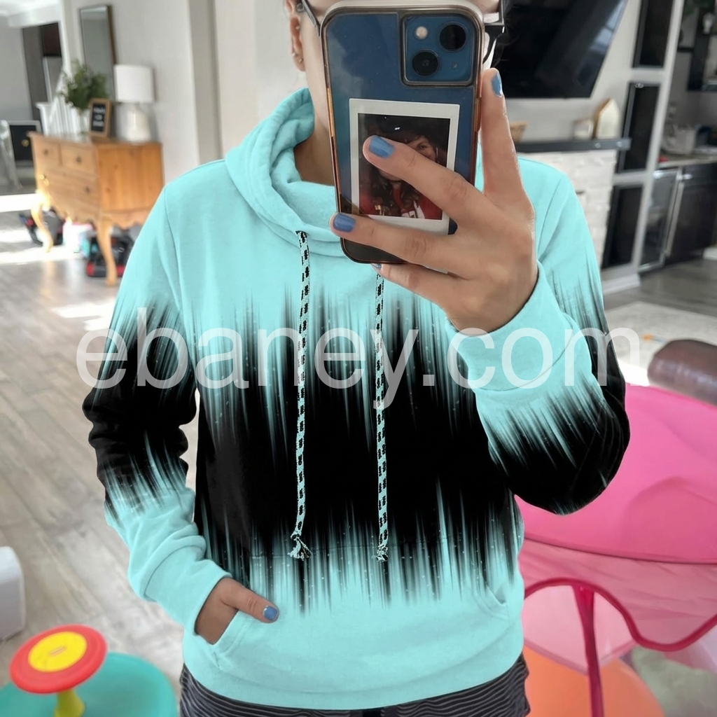 This ombre hoodie is a total game-changer for my casual wardrobe! The mint-to-black gradient is so eye-catching and unique, never seen anything quite like it. The soft, lightweight fleece feels amazing against my skin, and the cowl neck with drawstrings is perfect for snuggling up on cool days. It’s super comfy, fits true to size, and the bold print instantly elevates a simple jeans-and-tee look. I’ve gotten so many compliments whenever I wear it out!