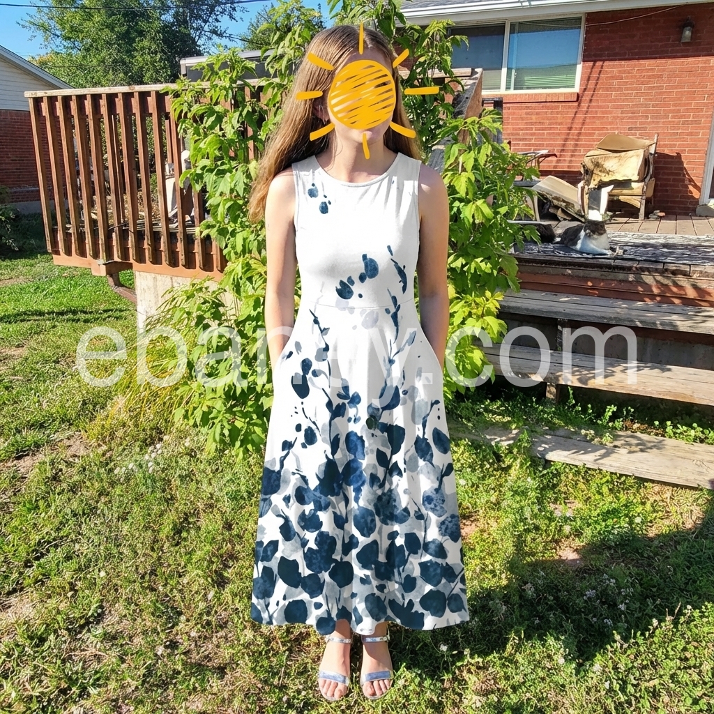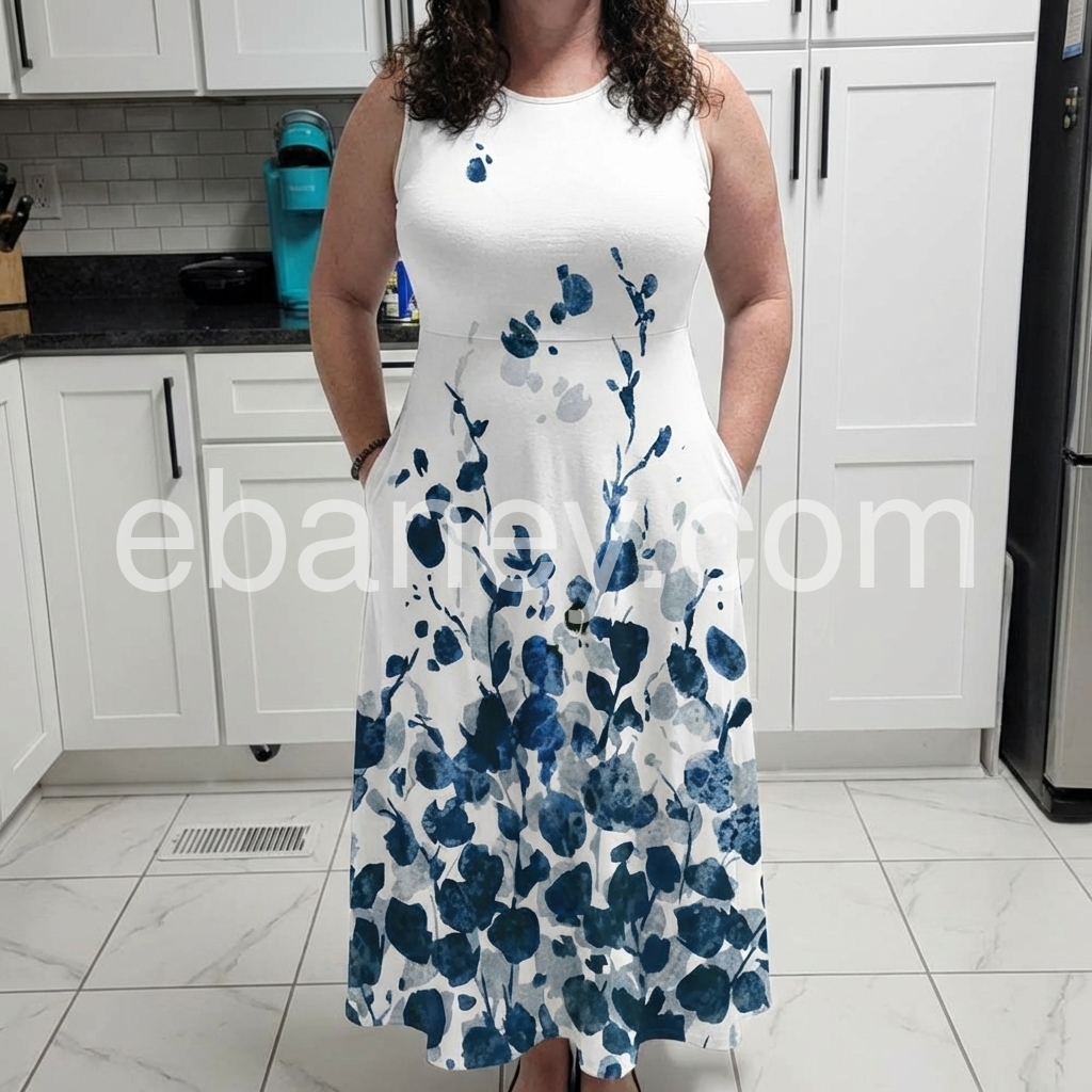Absolutely love this dress! The blue floral print is so beautiful and looks just like watercolor. Best part? IT HAS POCKETS! The material is incredibly soft and flowy, perfect for summer weddings or just a day out. Highly recommend!