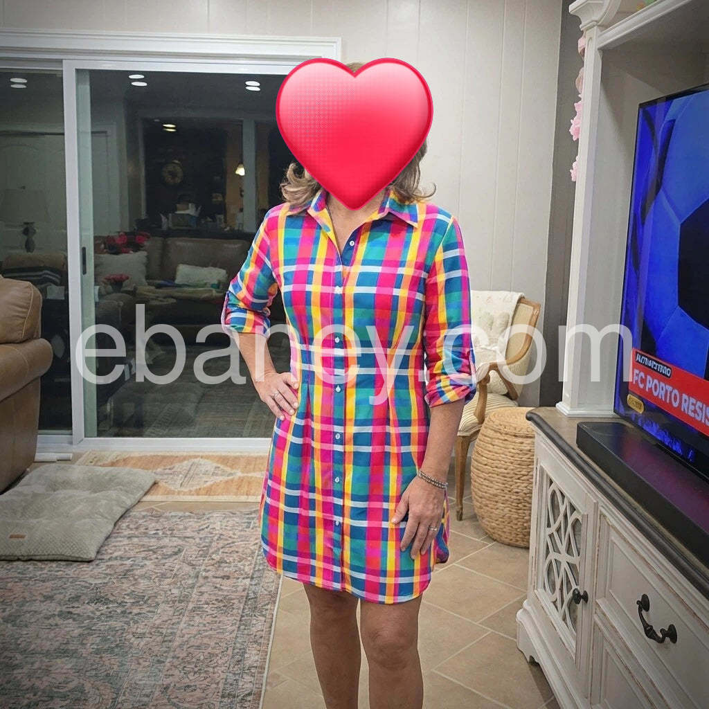 I was worried a plaid shirt dress might look boxy, but the tailored waist on this is amazing. It hugs my curves perfectly while still being comfortable. The colors are incredibly bright and fun.