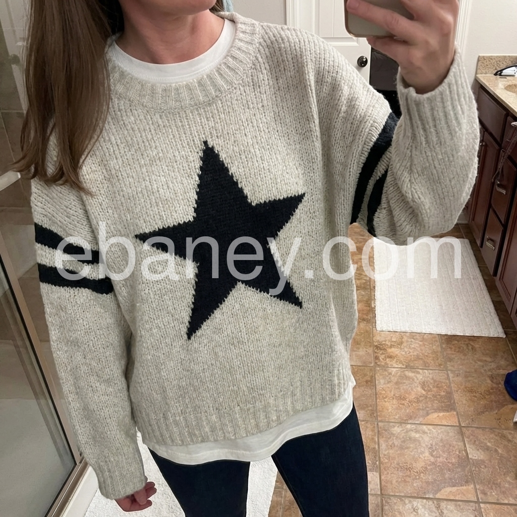Cute, thick, and comfy. It’s breathable but cozy. It washes just fine right out of the package. I usually wear size large in women’s but I sized up to have it baggy, and it does. I am not of the bigger bust community, but with sizing up, there was plenty of room with this sweater. I can see myself buying more in the future!