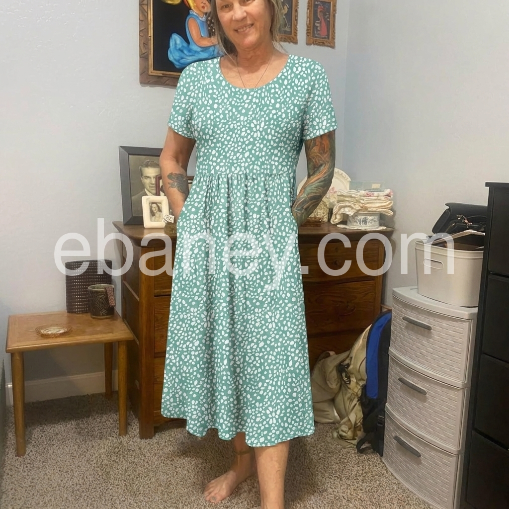 I am very picky about dresses, but this one exceeded my expectations. The elastic waist is forgiving and comfortable for all-day wear. The length is classy and the short sleeves are very flattering. It is a fantastic everyday dress.