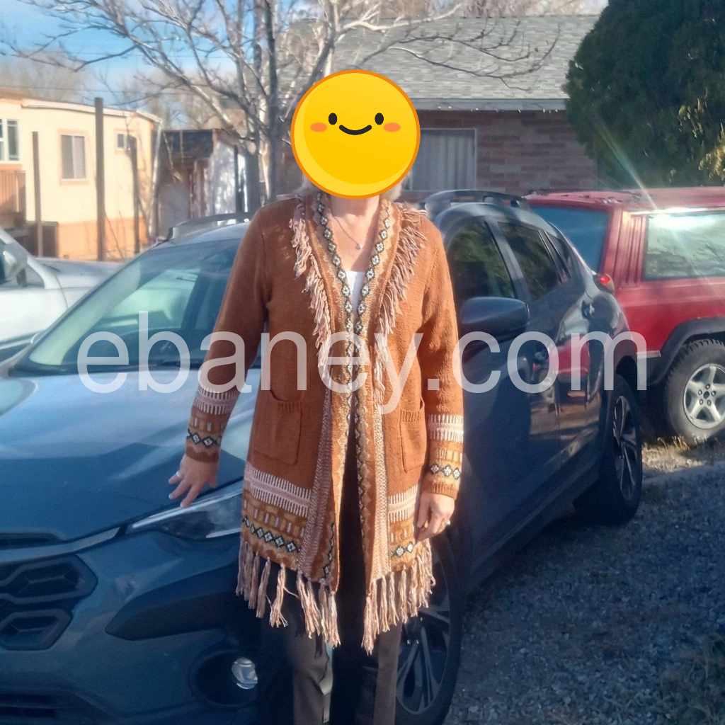 I wasn’t sure about the color online, but in person it’s even better—rich, earthy, and easy to match. The pattern looks crisp, and the knit texture feels comfortable against my skin. I also love the long sleeves and the fringe detail; it makes the cardigan look styled rather than just thrown on. I’ve worn it to brunch and on weekend errands, and it keeps me feeling cozy without overheating. The fit is flattering and gives a nice loose silhouette. I’m very happy with this purchase.