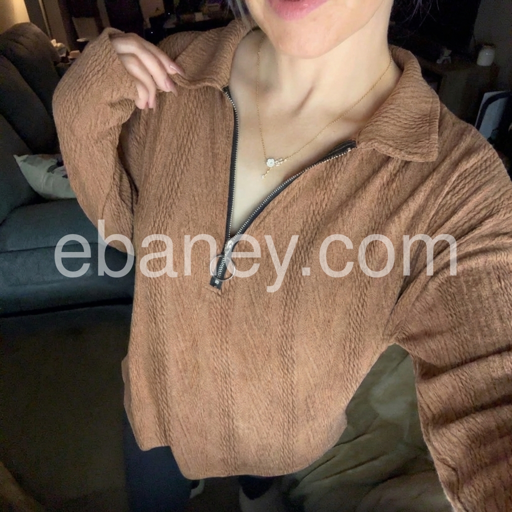 I love this long sleeve shirt. It has a have zip neckline. It’s very comfortable and super cute. It’s definitely a good bargain for the money. It fits great it is true to size. It’s made of good quality material and looks good with many different outfits.