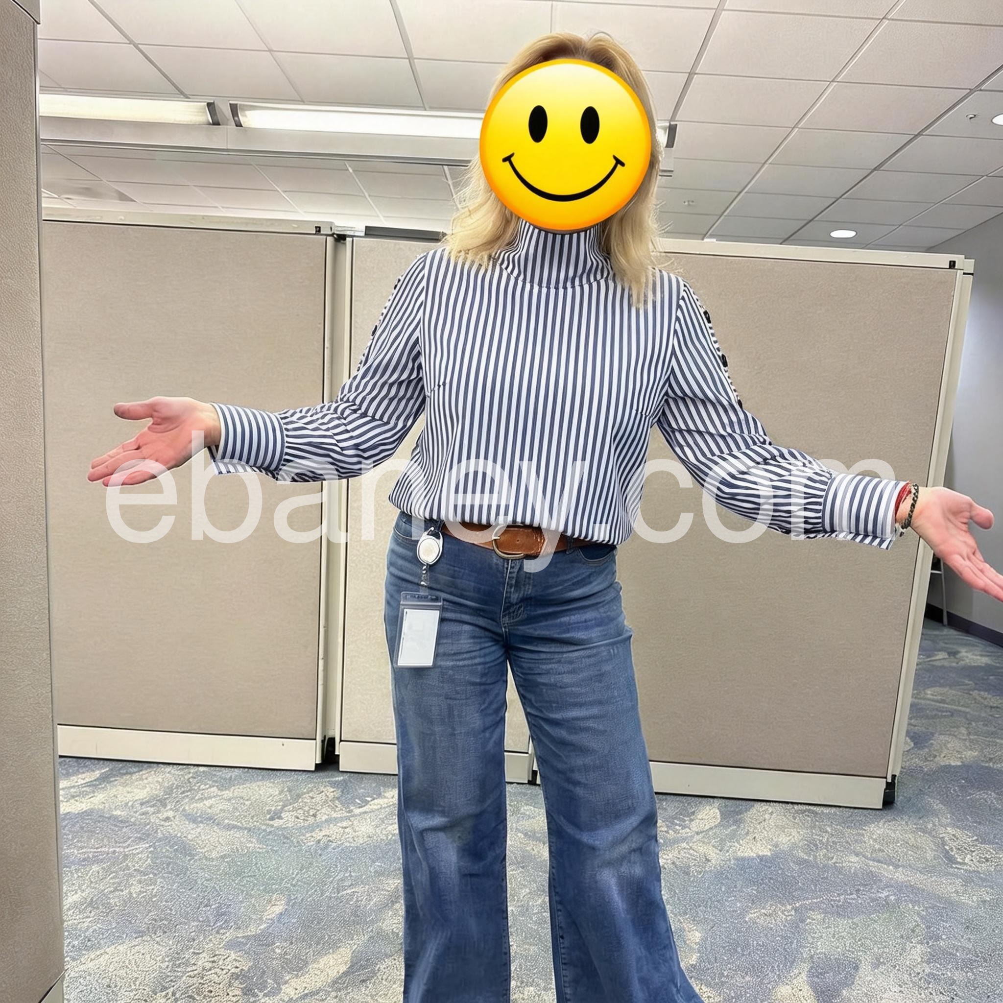 Perfect top for the office! I paired it with white trousers just like the model and received so many compliments. It fits true to size and hides the tummy well.