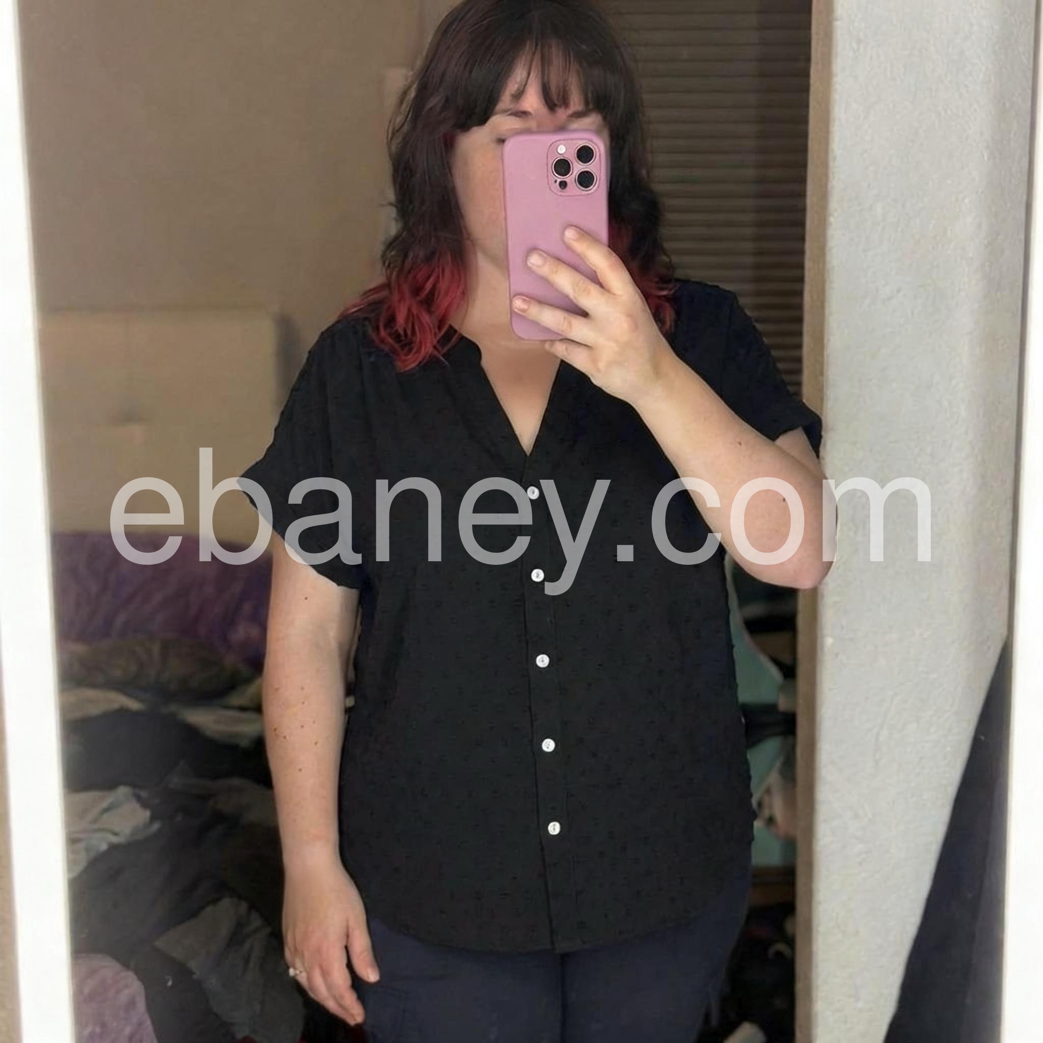This black blouse is a staple in my closet now. It drapes beautifully and hides my tummy area well. Highly recommend!