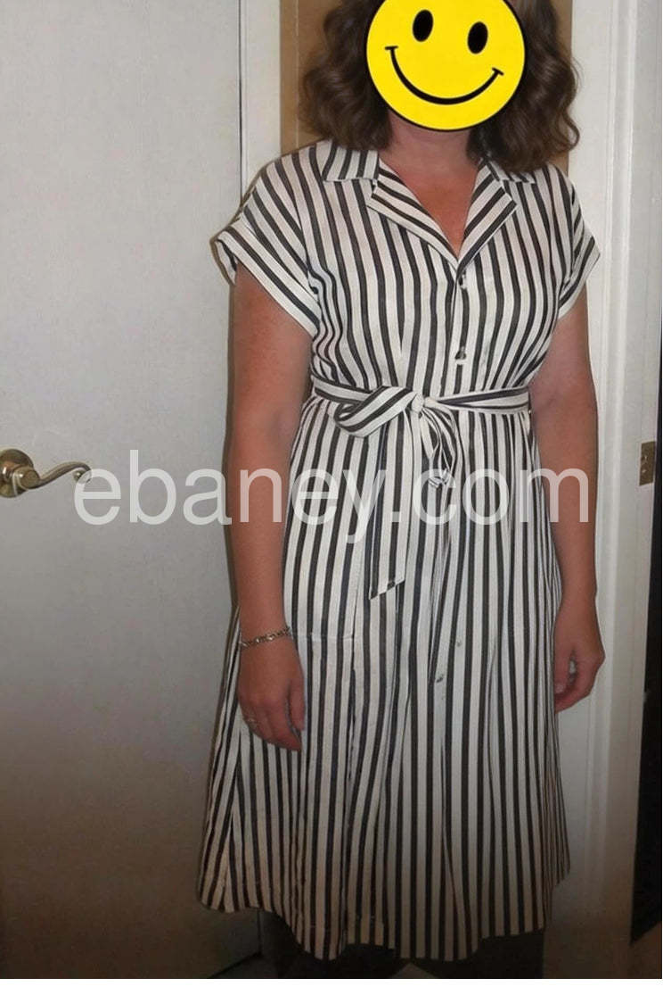 Style# 1544176This timeless black and white vertically striped shirt dress combines modern minimalism with effortless elegance. Crafted from lightweight, breathable fabric—likely cotton or linen blend—it features a clean collared neckline, short sleeves, and a full button-down front that adds a polished touch. The built-in self-tie belt cinches the waist, creating a flattering silhouette that balances structure and comfort. Designed in a midi length, it falls gracefully to the mid-calf, making it perfect for both casual days and smart-casual occasions. Functional side pockets add practicality without compromising style. Paired with strappy heels or sandals, this versatile dress is ideal for brunches, office-to-evening transitions, or weekend outings. Its crisp monochrome pattern exudes sophistication while remaining effortlessly wearable. A wardrobe staple that blends fashion, function, and fresh summer charm.
