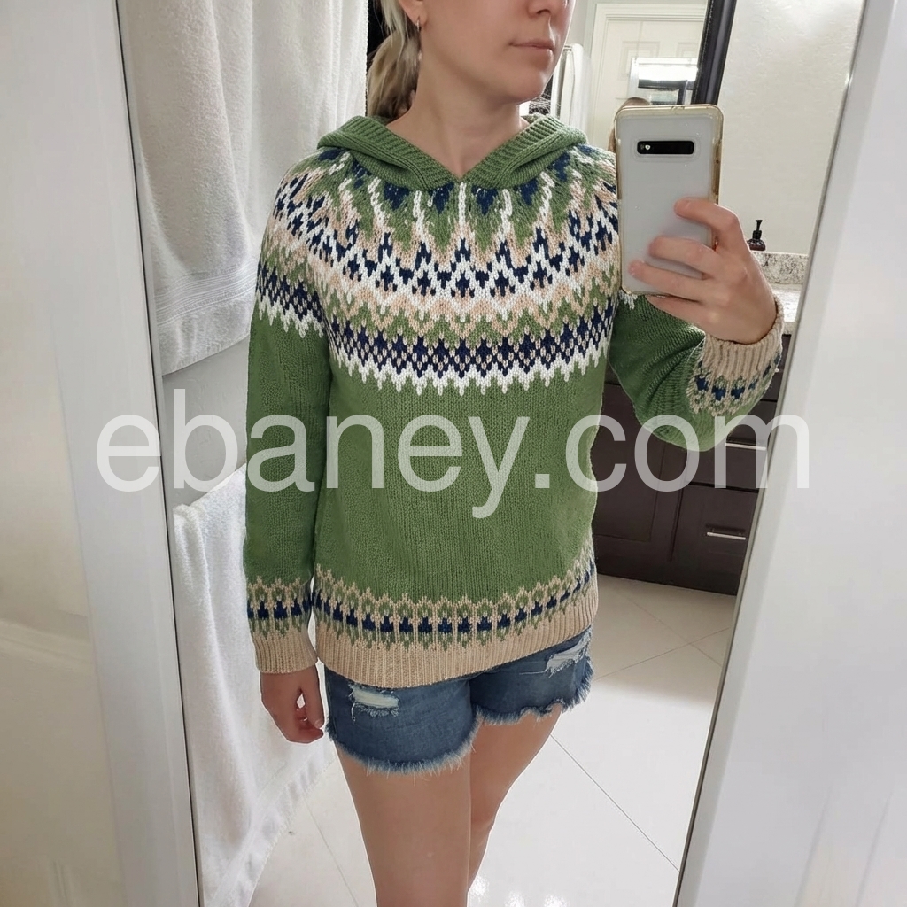 Cute sweater! I purchased the size small. I am 5'4\", 130 lbs, 34DD bust. I would say it is true to size. It is a nice relaxed fit without being boxy or too oversized. The material is very stretchy. It is porous so not meant to be super warm. The colors are pretty and vibrant.