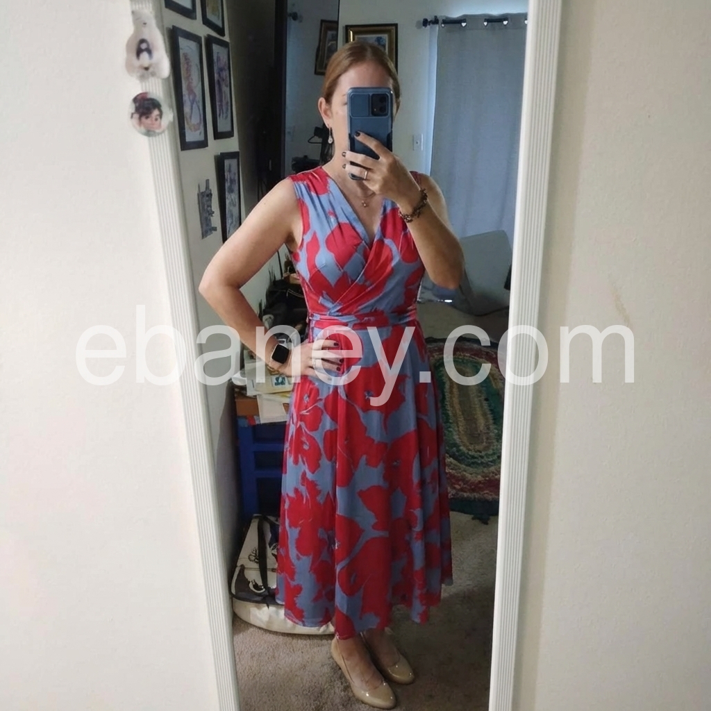 This floral wrap midi dress is absolutely stunning! I love the V-neck wrap design that cinches perfectly at the waist with the matching belt, creating such a flattering silhouette. The bold red and blue floral print is vibrant and eye-catching, perfect for spring weddings or brunch dates. It flows beautifully when I walk, and the fit is true to size. I got so many compliments the first time I wore it!
