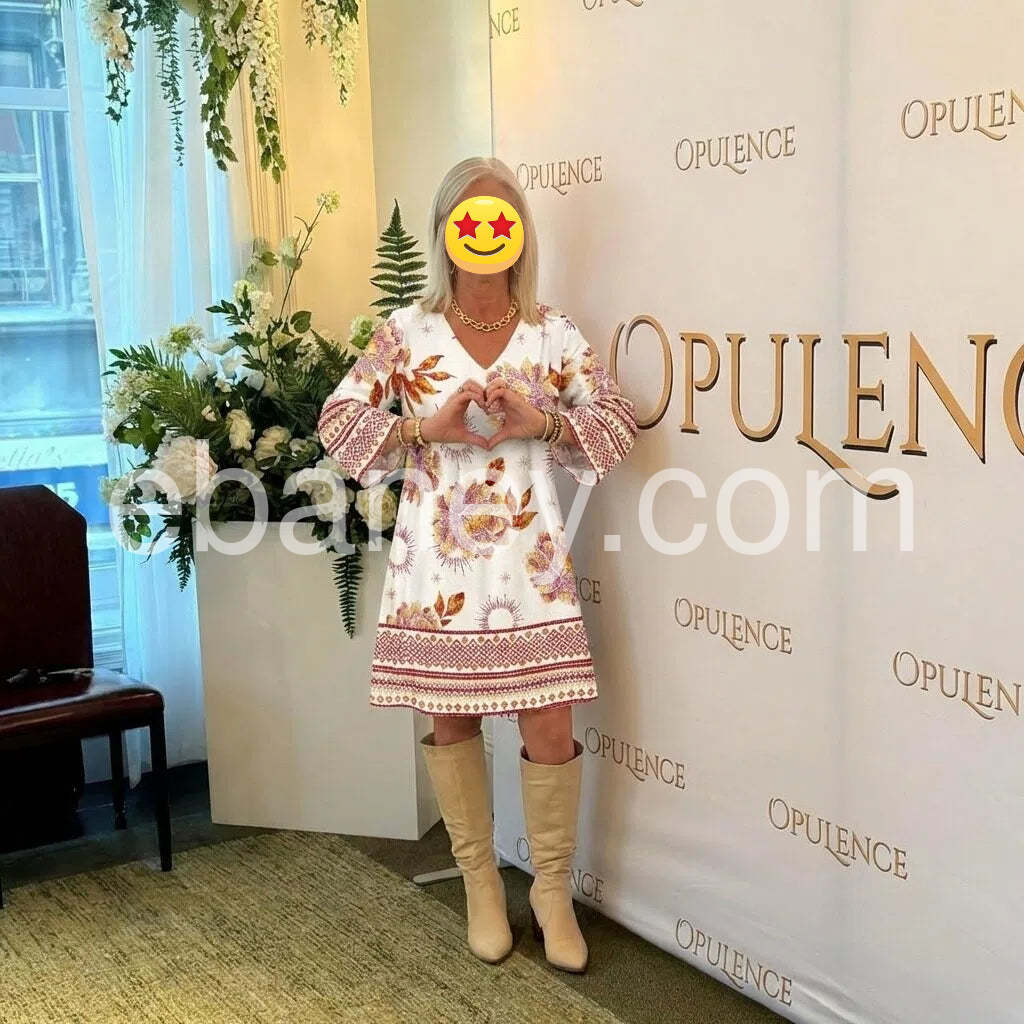 Unique Floral Print Long Sleeve Mini Dress