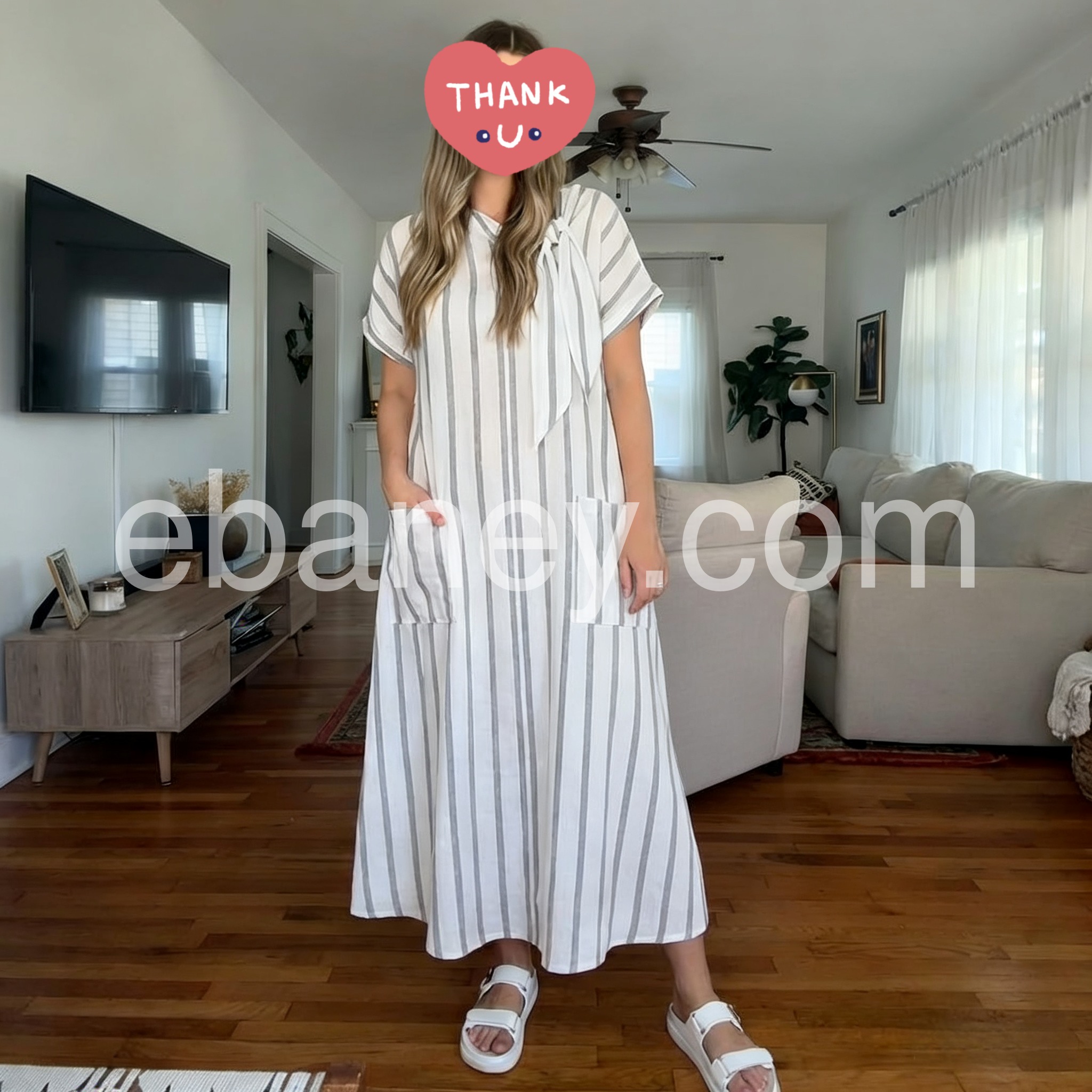 Such a stunning, effortless piece! The vertical stripes elongate the body beautifully. It kept me cool all day while walking around in the humidity. A must-have for your summer wardrobe.