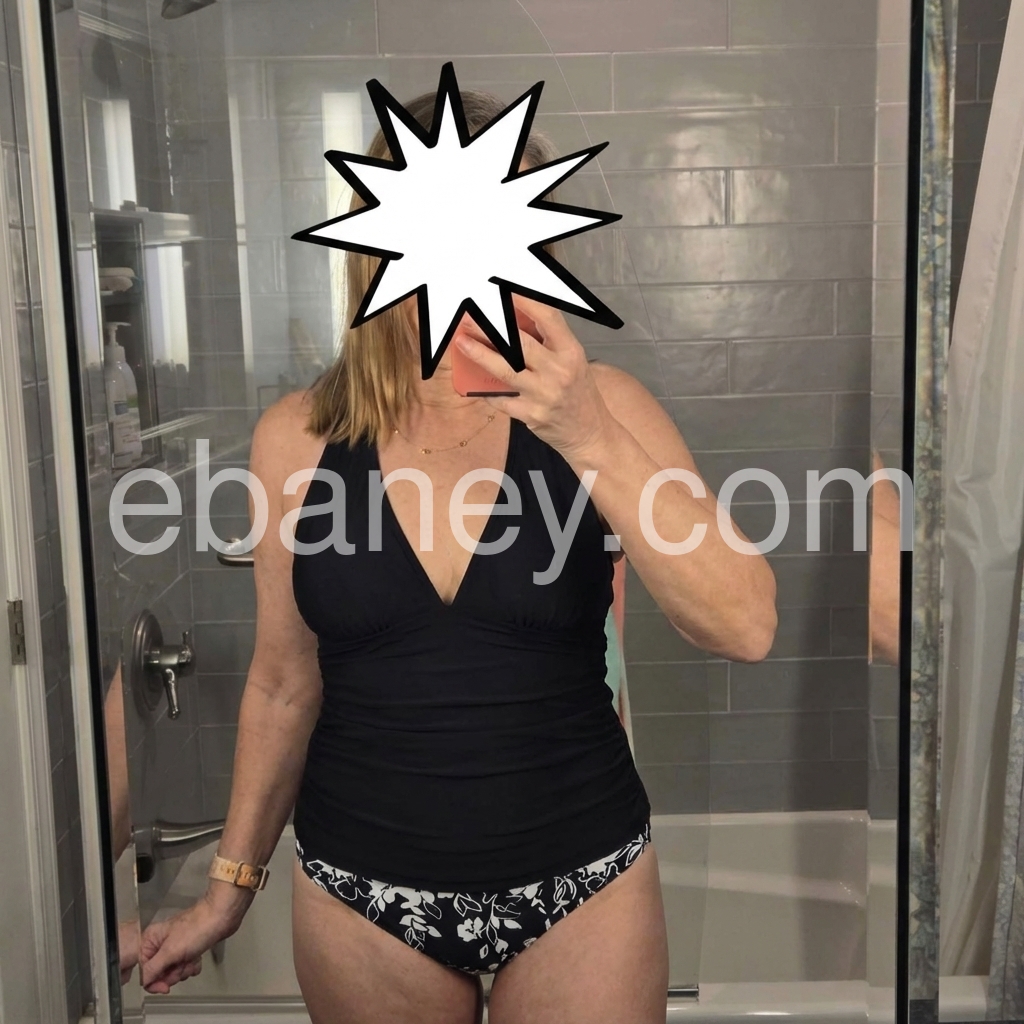 I like this suit a lot. It's comfortable and it masks my belly a bit. I tried a bunch of one pieces but they're all tight and emphasized the belly while making my backside look flatter than it is. Two piece suits are great and preferable when it's hot out.