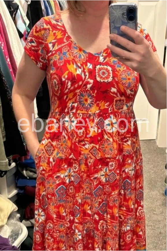 Living in a hot climate, I need clothes that keep me cool. This midi dress is breezy and light. The colors are incredibly rich and the pattern hides any small wrinkles perfectly.