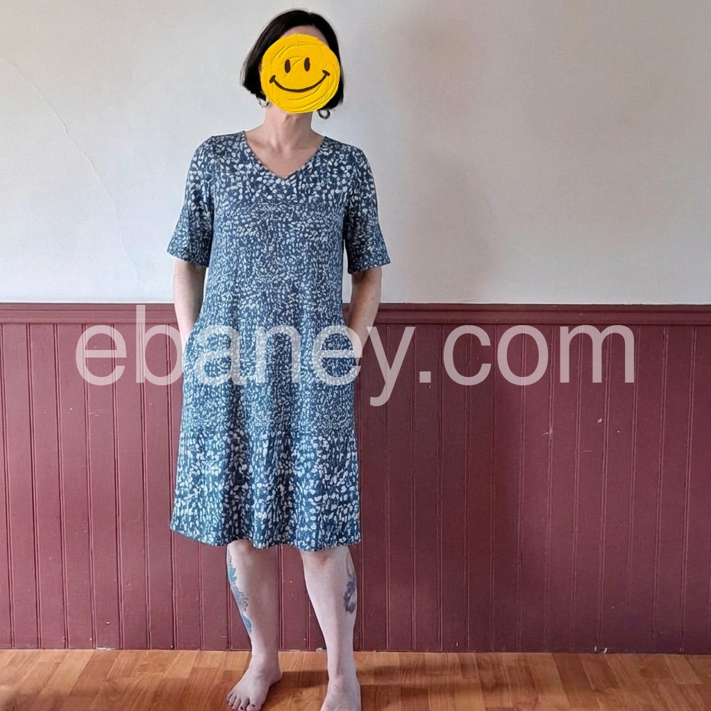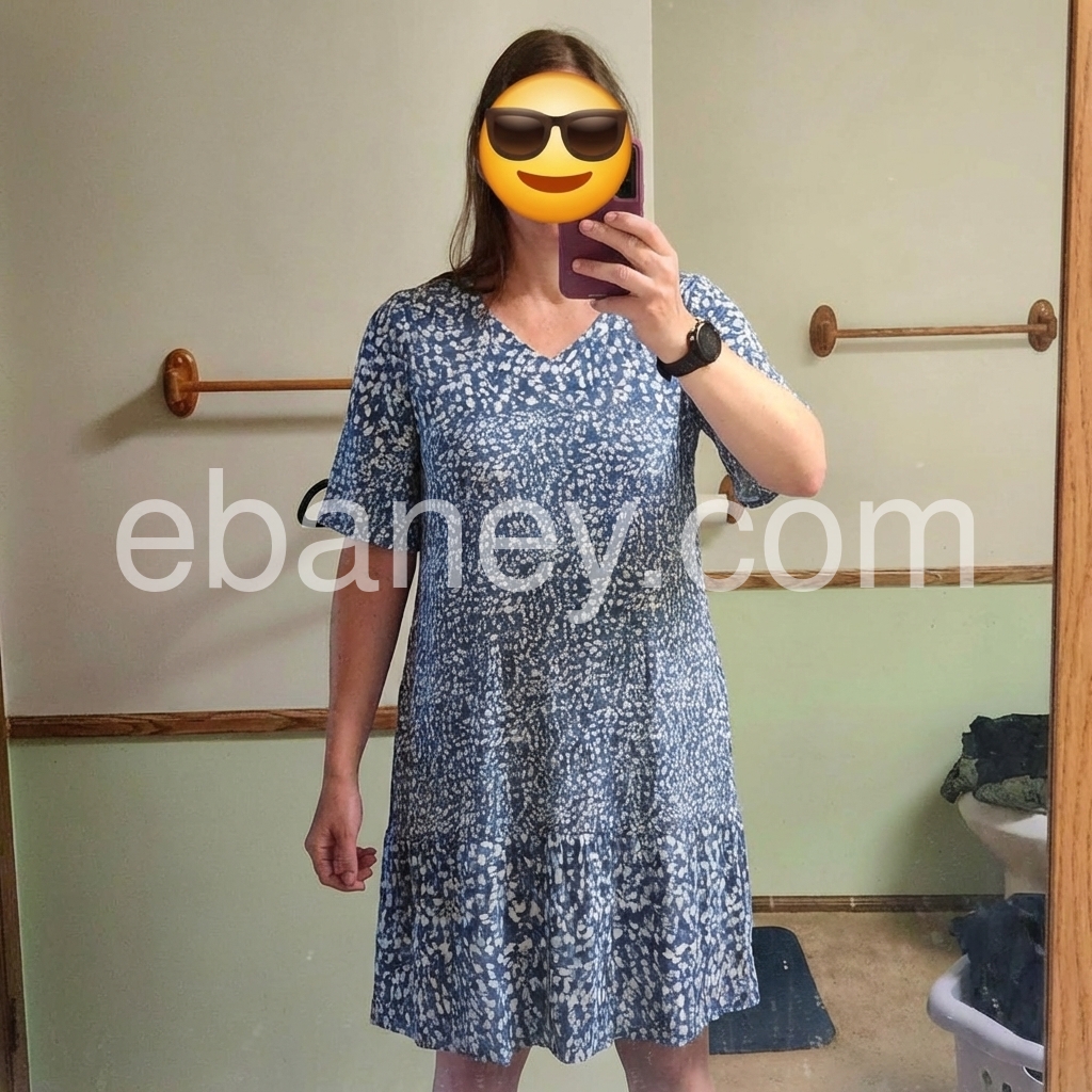 Absolutely love this dress! The blue and white pattern is so pretty and perfect for summer. It fits incredibly well, loose enough to be comfortable but still gives a nice shape.