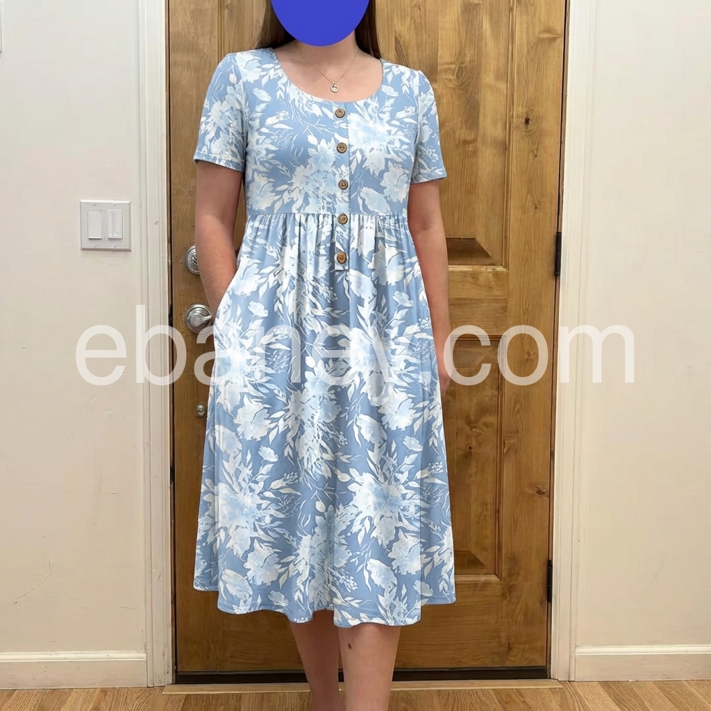 I absolutely love this dress! The light blue floral pattern is so pretty for spring, and the best part is that it has pockets! It fits perfectly and the material is very soft and breathable. Highly recommend.