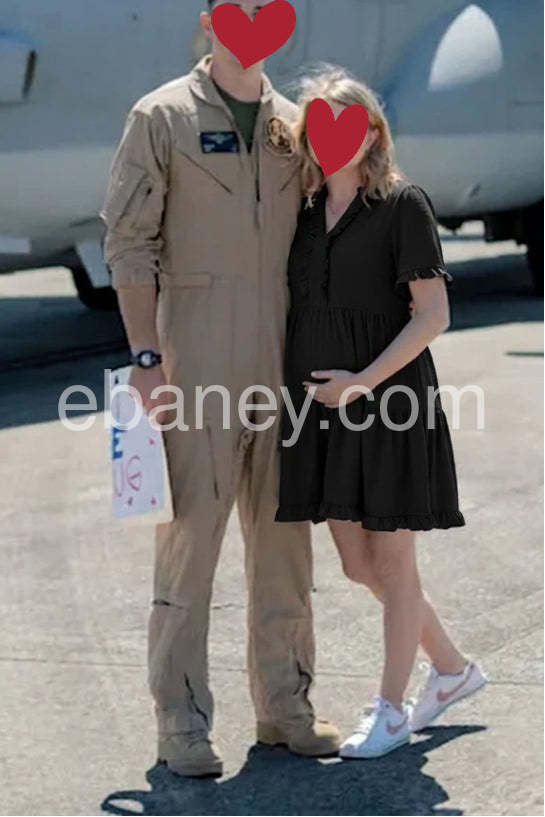 Black Tiered Ruffle Short Sleeve Midi Dress